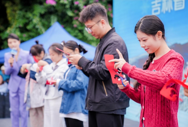 活动现场,长白山文旅推介员围绕长白山的自然资源、生态优势、游玩项目、服务体系等方面进行了资源推介;以视频的形式展现了畅滑粉雪、飘雪温泉、雪谷穿越、围炉煮茶、冰雪越野、长白山·金1172、奇幻猫冬、飞越长白山、浪漫旅拍、雾凇漂流等长白山冬季旅游十大玩法;搭建非遗展示平台,隋式铁艺互动讲解与非遗剪纸现场教学体验引得市民驻足围观;舞蹈《松桦恋》《龙啸九州》等为推介活动注入灵动气韵,彰显长白山的自然与人文魅力;主持人还向成都市民介绍了长白山新三宝——长白山人参、长白山矿泉水、长白山松花砚;特色旅游商品展销区人头攒动,气氛高涨。