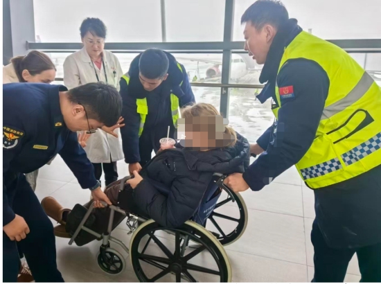 上午10时14分,搭载伤员的救援车辆准时抵达机场,医护人员与转运人员默契交接,耐心告知受伤旅客乘机救援流程,缓解其紧张情绪。登机前,医护人员与机组人员详细交接旅客伤情及注意事项,在医护人员的乘机陪护下,受伤旅客顺利登机。