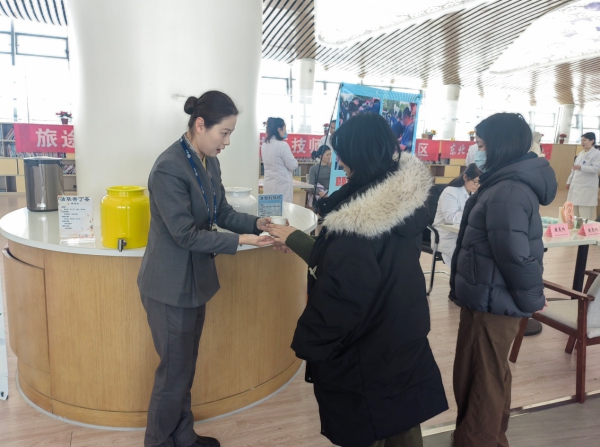 新春伊始,年味渐浓,在春运出行高峰之际,长白山机场深入贯彻落实春运期间民航局关于做好旅客服务、保障旅客便捷温馨出行的工作要求,再度携手长春中医药大学附属医院白山医院,依托全国首创的“航空中医馆”品牌优势,在航站楼开展“长白春早・医暖空港・情满旅途”新春主题健康文化活动。