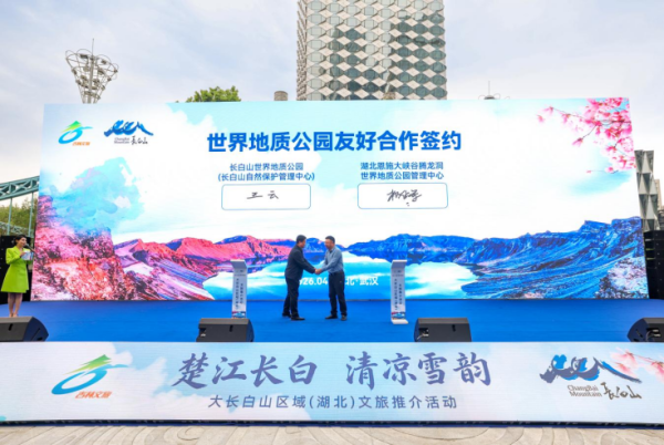 长白山世界地质公园(长白山自然保护管理中心)与湖北恩施大峡谷腾龙洞世界地质公园管理中心签订友好合作意向书
